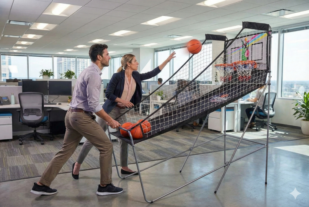 Az Adventure Park egy irodai vidámpark, ahol a résztvevők izgalmas játékokkal találkoznak. Kiderül, ki a legjobb retro videójátékokban, asztali bowlingban, távirányítós autó vezetésében vagy éppen mini golfban.